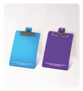 Tabla planillera tamaño media carta fabricada en poliestireno, un material rígido y resistente que proporciona una superficie firme para escribir o apoyar documentos. Es ideal para uso escolar, administrativo o institucional, permitiendo sujetar hojas de manera práctica gracias a su sistema de clip. Su diseño liviano la hace fácil de transportar y manipular. Puede personalizarse con tu marca y en diferentes colores a partir de 3.000 unidades, siendo una excelente opción para campañas promocionales o dotación escolar.