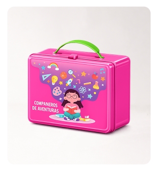 Practica lonchera que cuenta con botilito y espacio para los paquetes o frutas de los niños. Por su practico diseño los niños podrán llevar su lonchera a cualquier lugar pensando en su bebida y su comida; el botilito puede llevar una tapa con llavero o una tapa con chupo. Ideales para ser utilizado en campañas publicitarias ya que cuenta con gran área de decorado. - Compuesta por cuerpo y botilito.